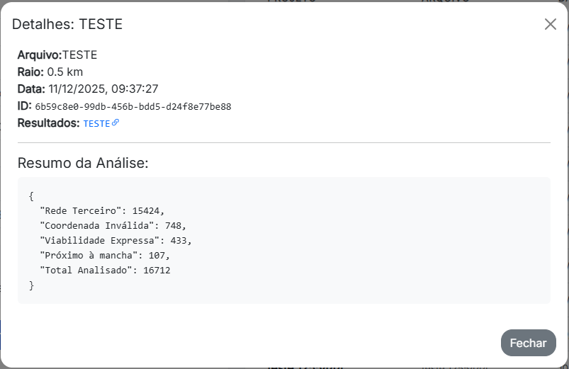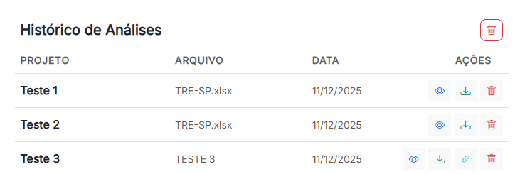Baixar (): Baixa o resultado da análise em formato .XLSX.